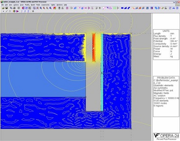 An FEA example of a motor, showing field lines within the steel of the motor circuit: